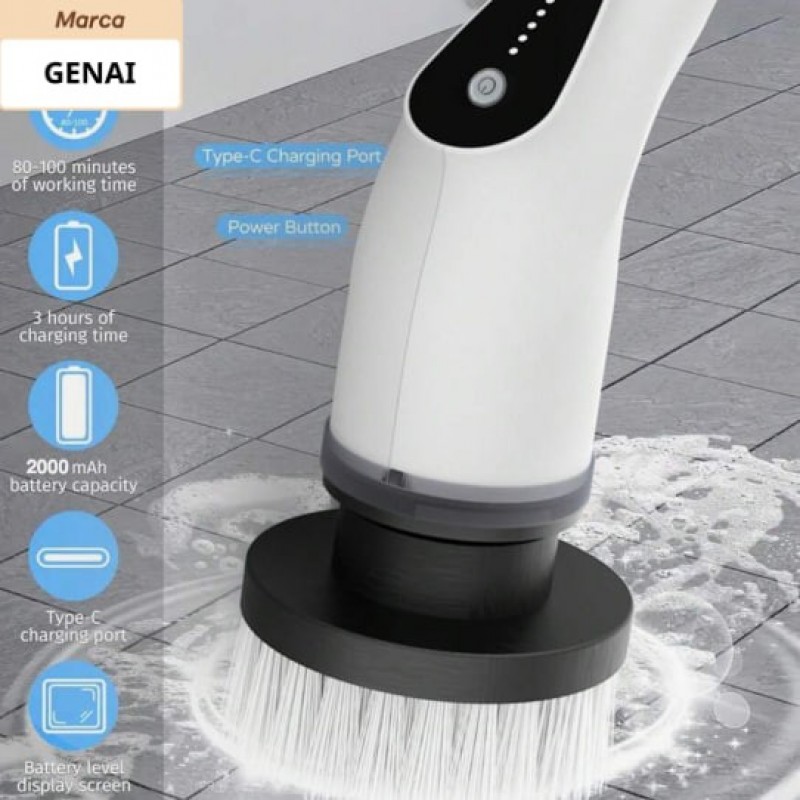 GENAI Cepillo de limpieza eléctrico giratorio, cepillo de limpieza inalámbrico para el hogar, 9 cabe