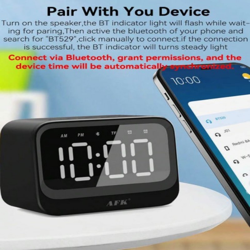 Reloj despertador portátil multifuncional con altavoz inalámbrico mini, radio FM, pantalla de hora y